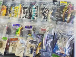 人気のラインスラックルアーをたくさん買取りました!インディーズトップウォーターの高価買取りなら当店にお任せください!