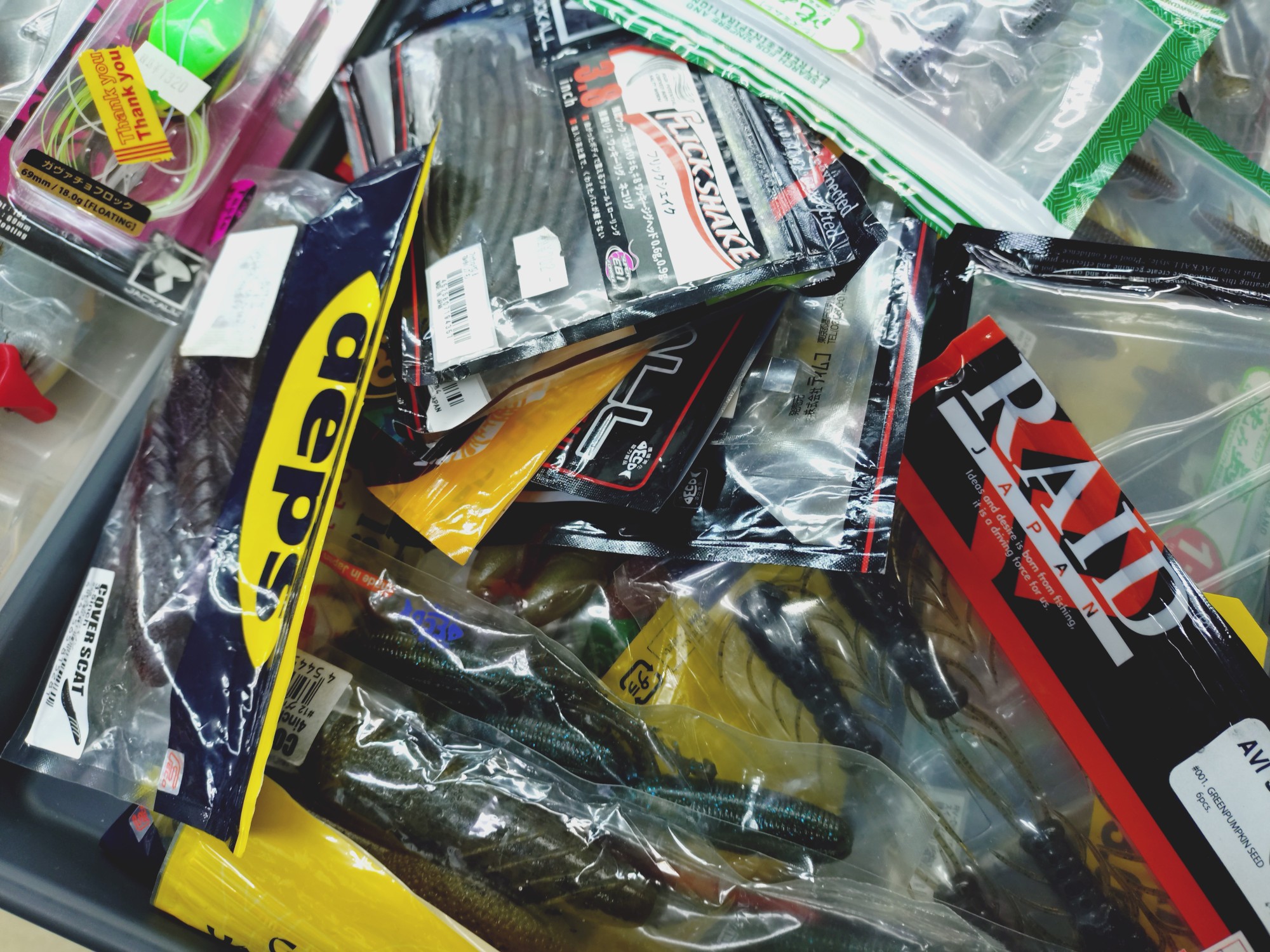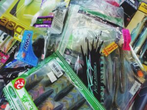 ビッグベイト、ハードルアー、ワームなどを買取りさせていただきました。
