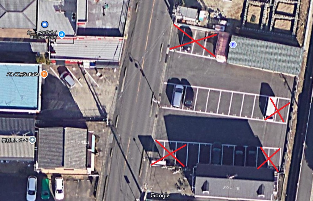 赤斜線部は月極契約、SAKURAさんの駐車場となります。