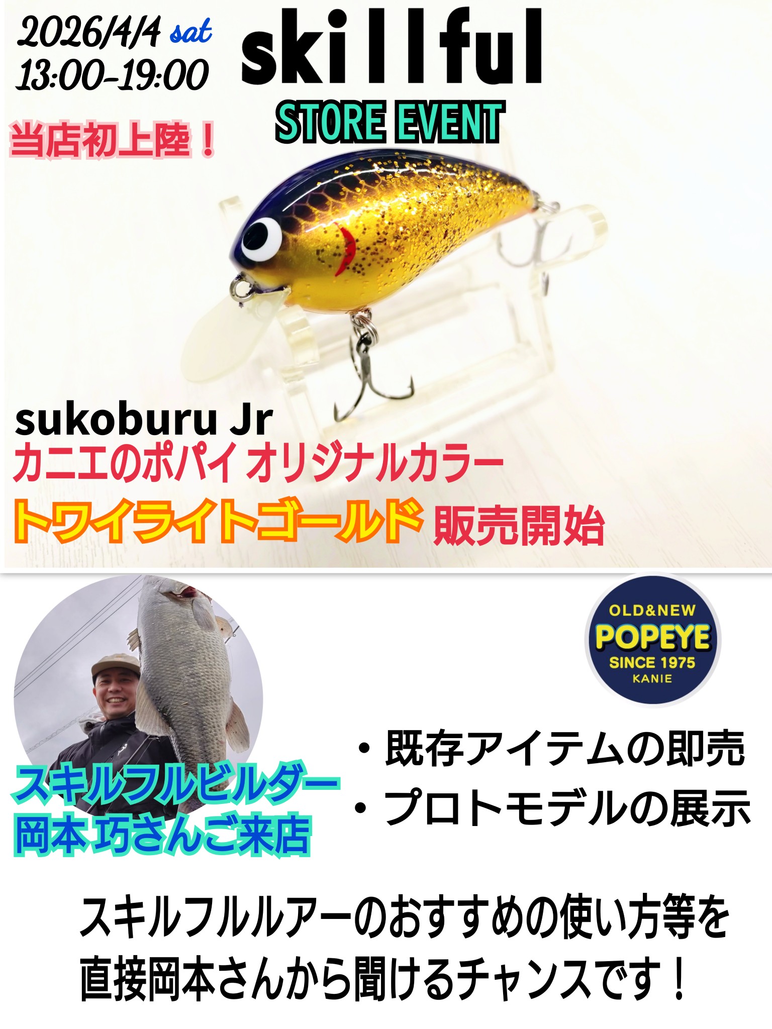 カニエのポパイ初!4月4日(土) スキルフル ストアイベント開催決定!