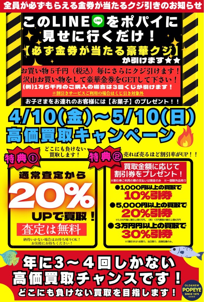 金券くじ引きイベント/中古釣具超高価買い取り